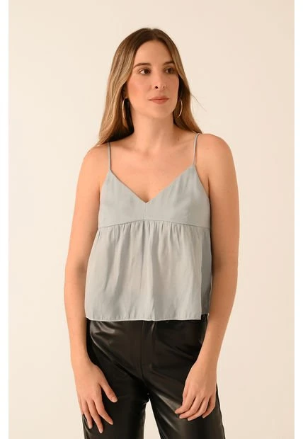 100% poliésterLa modelo mide 1.72 cm y usa talla MTop de tiras ajustables color azul referencia LUSIANA
