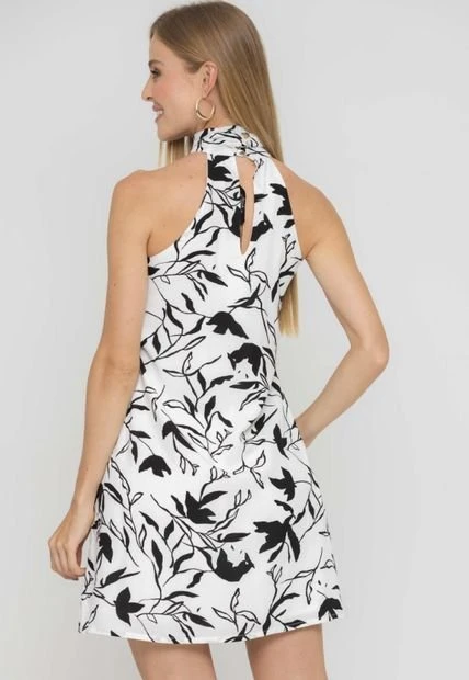 Vestido en chalis estampado, forrado, escote halter, manga sisa, linea a, silueta Loose, bolsillos laterales. RAGGED es una empresa competitiva y sólida que cuenta con más de 30 años de experiencia con su propuesta de diseño y moda,