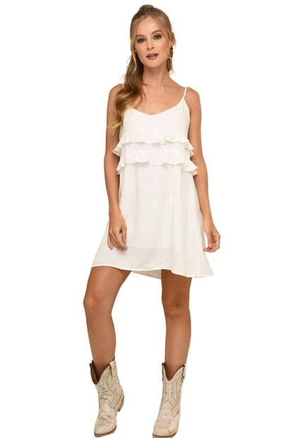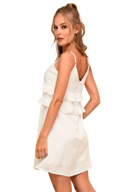 Vestido corto fondo entero, tiras pitillo con tensor y argolla, corte con bolero debajo del busto, corte en cintura con bolero, forrado en la parte interna.