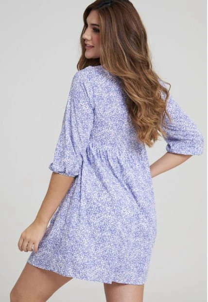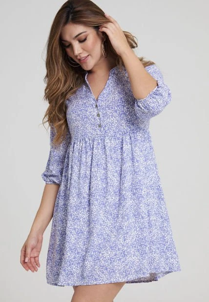 Vestido corto en chalís estampado, escote en V con media perilla, manga 3/4, silueta Loose. RAGGED es una empresa competitiva y sólida que cuenta con más de 30 años de experiencia con su propuesta de diseño y moda,