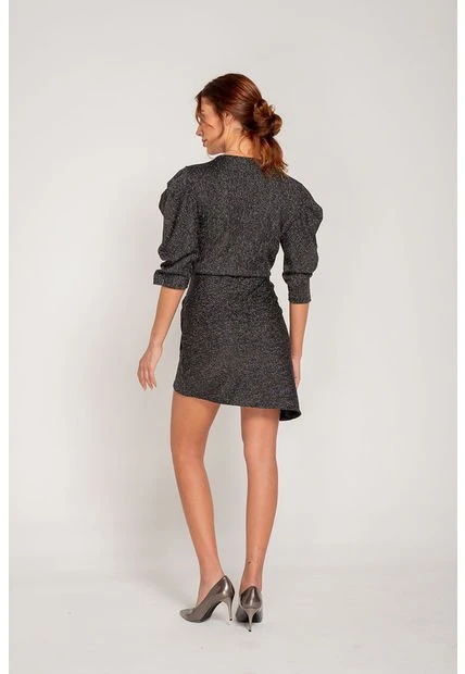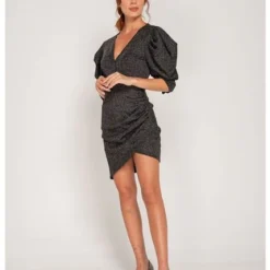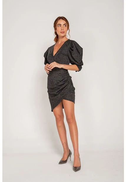Vestido para mujer corto con recogido en el lateral, escote en V profundo, mangas englobadas 3/4, largo asimétrico. Un diseño perfecto para lucir en las ocasiones románticas y especiales. Puedes elegir un calzado abierto para fiestas de día o cerrado para la noche.
