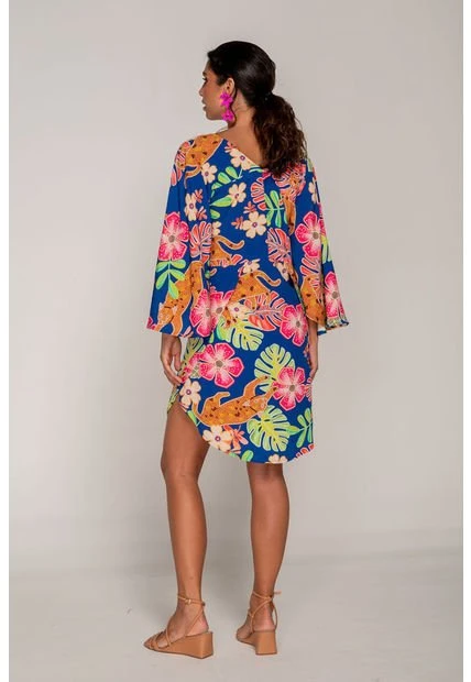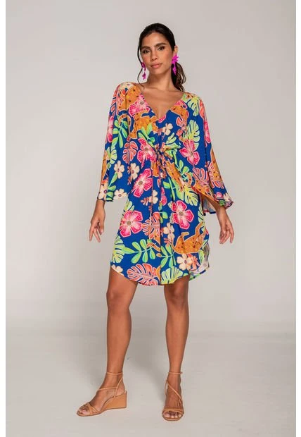Vestido para mujer corto, estampado floral, con recogido graduable en cintura, escote en V profundo, mangas amplias. Silueta amplia. Un prenda perfecta para tús looks de verano. Un par de tacones, sandalias o plataformas de un solo color y que tengan algún detalle brillante, ¡Te harán lucir hermosa!