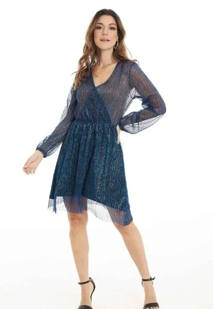 Vestido en tejido punto plisado, escote cruzado con cintura Ajustado con elástico, manga larga, elástico en puño, falda corta asimétrica. RAGGED es una empresa competitiva y sólida que cuenta con más de 30 años de experiencia con su propuesta de diseño y moda,