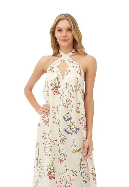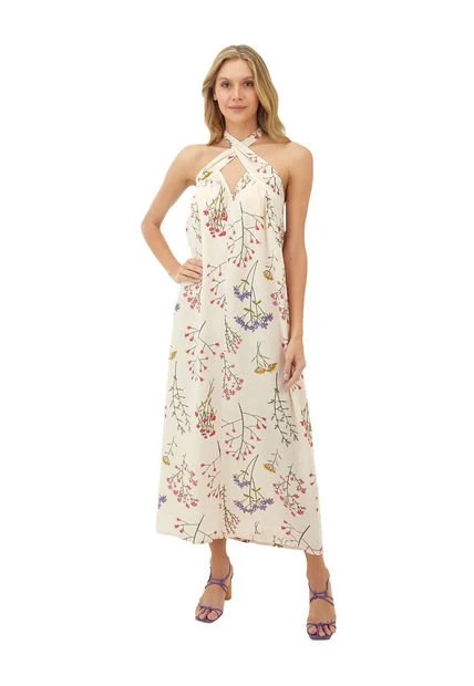 ¡el complemento perfecto para tu armario de verano! Este vestido está diseñado para que te sientas, cómoda y elegante a la vez. Con su silueta amplia, escote en V delante y tirantes cruzados que se anudan al cuello, este vestido es un auténtico espectáculo.