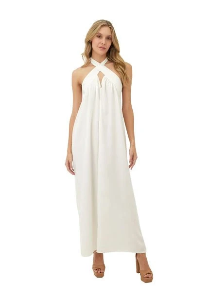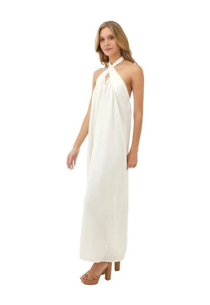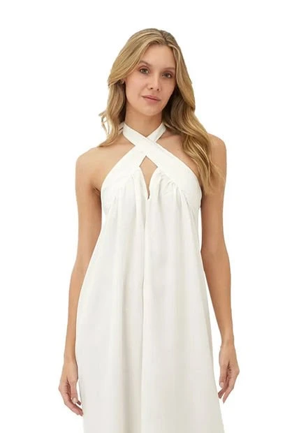 ¡el complemento perfecto para tu armario de verano! Este vestido está diseñado para que te sientas, cómoda y elegante a la vez. Con su silueta amplia, escote en V delante y tirantes cruzados que se anudan al cuello, este vestido es un auténtico espectáculo.