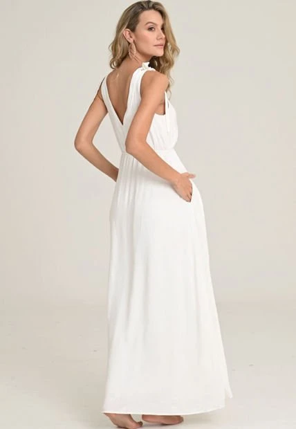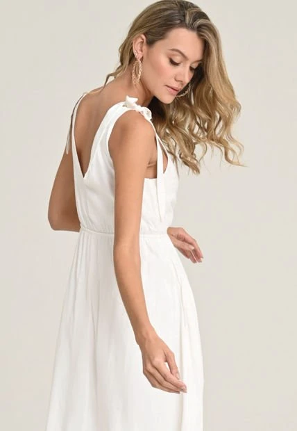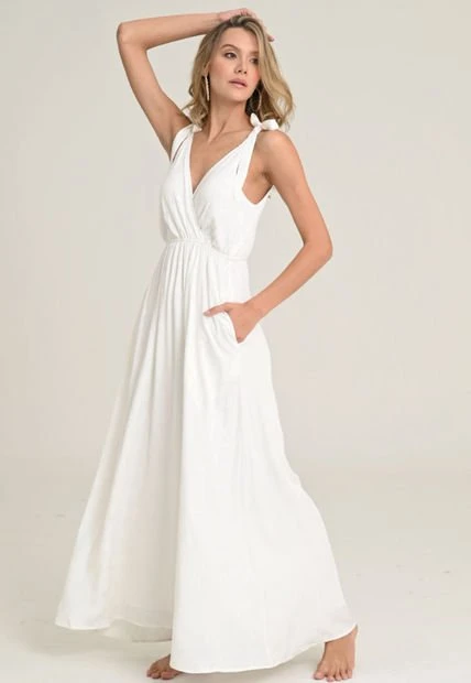 Vestido largo en chalis fantasía fondo entero, escote cruzado en V, corte en cintura con elástico, bolsillos, tirantes con anudado en hombros, forro interno en chalis fondo entero. RAGGED es una empresa competitiva y sólida que cuenta con más de 30 años de experiencia con su propuesta de diseño y moda,