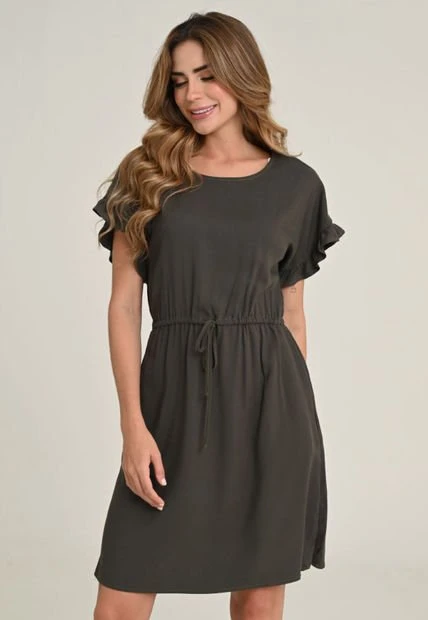 Vestido corto en chalis fondo entero, escote redondo con abertura en espalda y botón, manga corta rodada con bolero, detalle de túnel con jareta en cintura, bolsillos. RAGGED es una empresa competitiva y sólida que cuenta con más de 30 años de experiencia con su propuesta de diseño y moda,