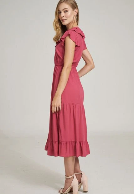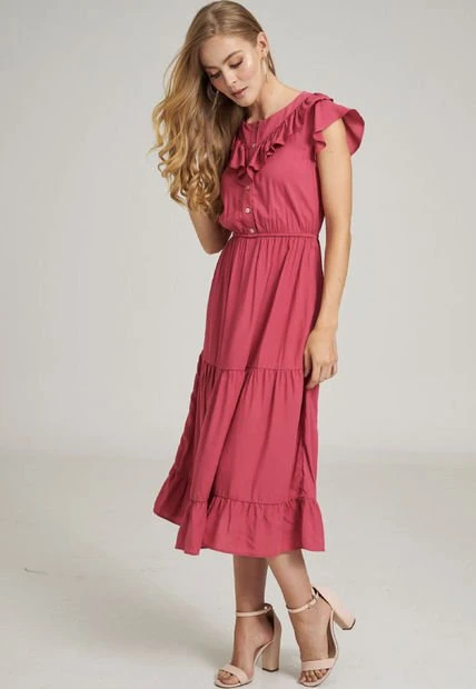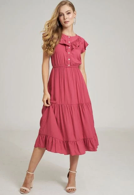 Vestido en chalis fondo entero, perilla en centro frente con botón de 18L en nacar, elástico en cintura, bolero en delantero, manga corta, bolsillos laterales, falda con recogido suave, silueta semi – Ajustado. RAGGED es una empresa competitiva y sólida que cuenta con más de 30 años de experiencia con su propuesta de diseño y moda,