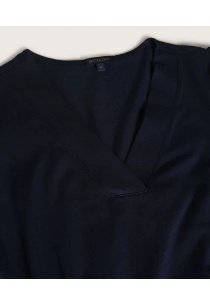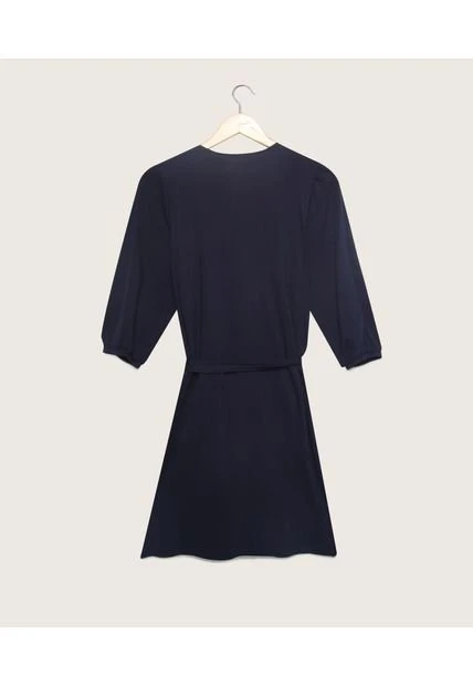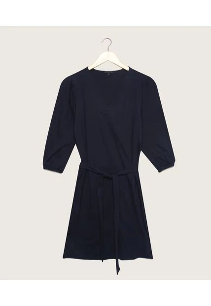Vestido Manga 45019 Unicolor Con Cuello En V, Cinturón De Entalle Y Recogido En Puño.