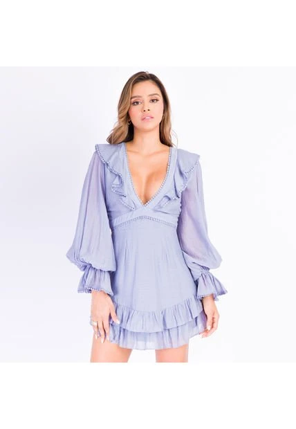 Vestido verde con apliques de golas, tiene caucho en las mangas.