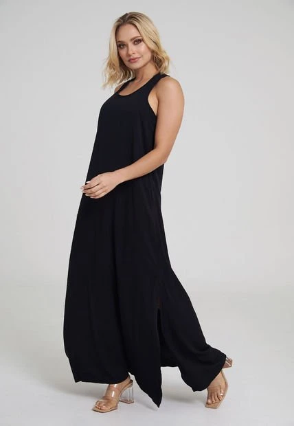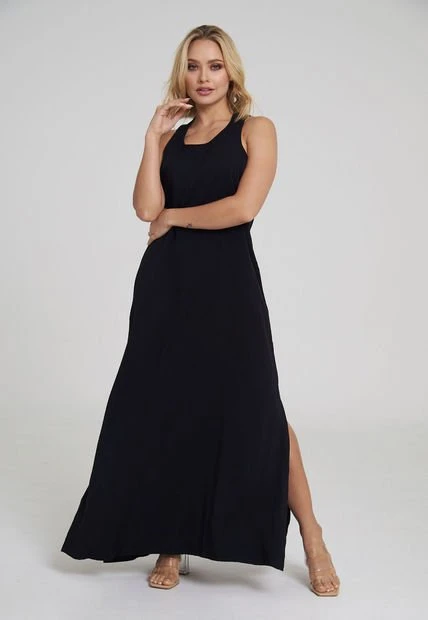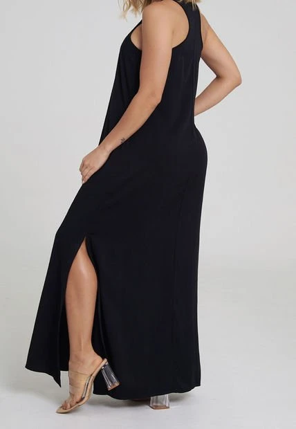 Vestido largo en chalis fondo entero, escote redondo, manga sisa, detalle de abertura en costado inferior. RAGGED es una empresa competitiva y sólida que cuenta con más de 30 años de experiencia con su propuesta de diseño y moda,