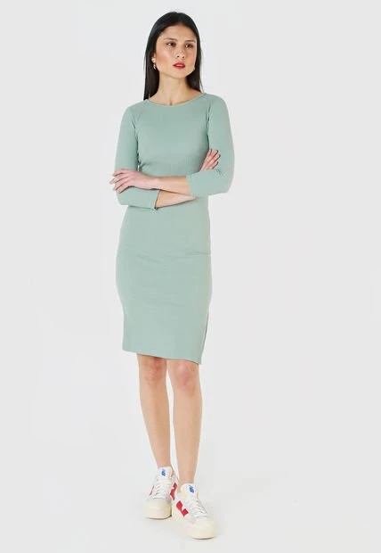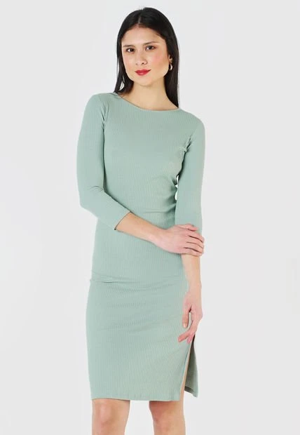 Somos una marca 100% colombiana, fabricamos nuestras prendas, generamos empleo, promovemos la industria nacional, así que cada que compres Rutta estas apoyando la economía del país. Este vestido largo de silueta ajustada, ha sido confeccionado en poliéster, algodón y elastano. Además presenta una serie de aperturas, la primera que va desde la altura de la pantorrilla y hasta el dobladillo y la segunda que se localiza en la espalda; es de cuello redondo y mangas largas; su diseño proporciona un efecto acanalado a lo largo de la prenda. Luce este vestido color verde oliva para ocasiones en las que debas vestir casual, y puedes acompañarlo con tus tenis blancos favoritos.