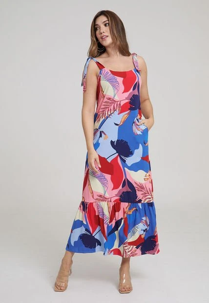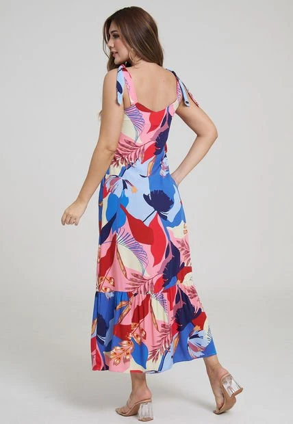 Vestido largo en chalís estampado, tiras de amarre, bolsillos laterales, bolero decorativo en ruedo. RAGGED es una empresa competitiva y sólida que cuenta con más de 30 años de experiencia con su propuesta de diseño y moda,