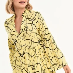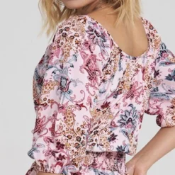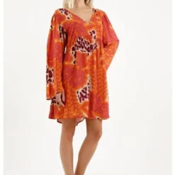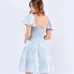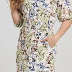 Vestido Corto Manga Larga Con Estampado De Flores (Lleva Vestido Corto Tiras Intermedio) Color Blue
